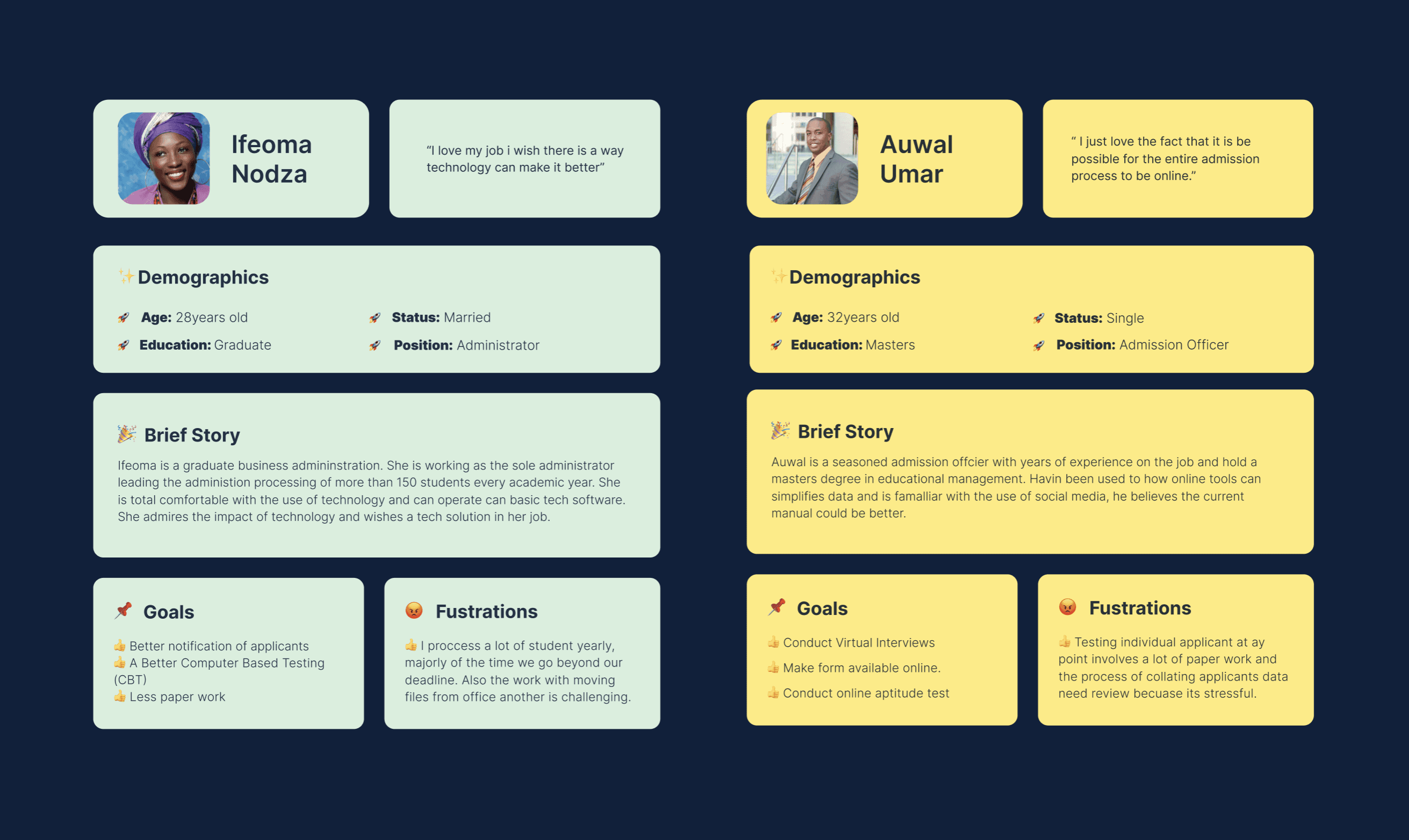 It is worthy of note that the interview stage of speaking with the applicants, School administrators, customer success team, and stakeholders helped create key insights that informed the design direction.