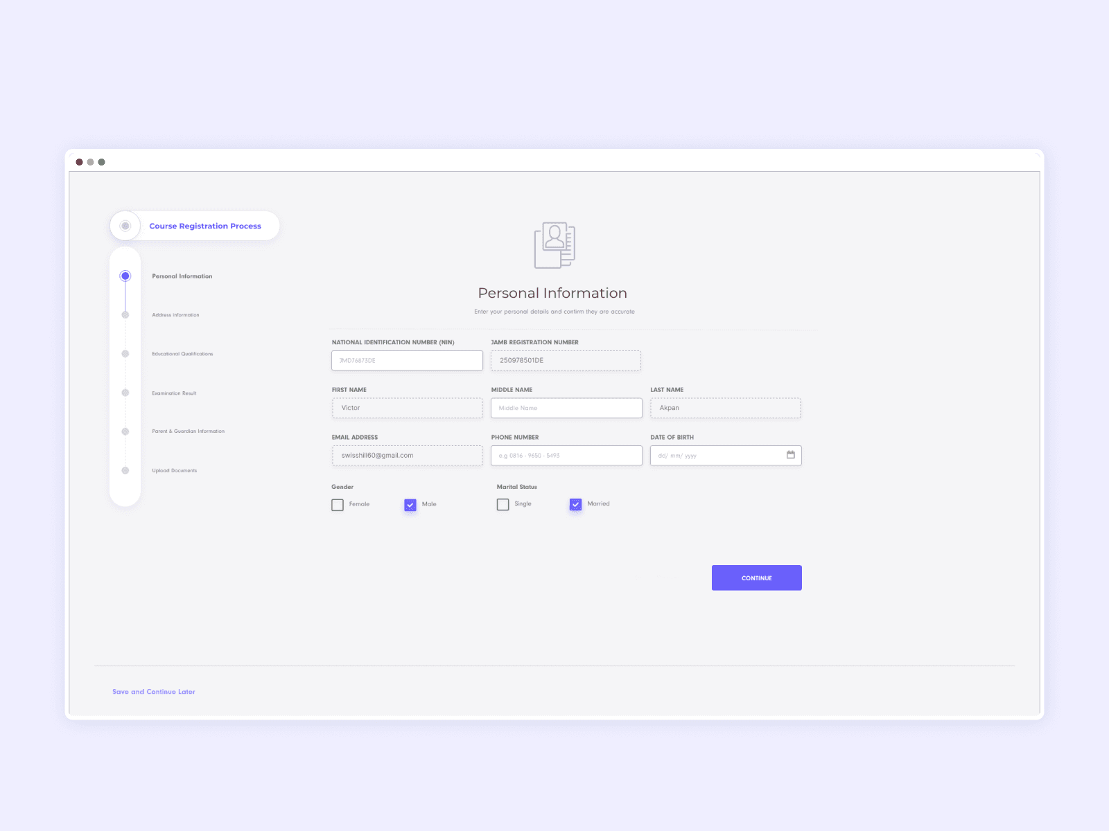 Proper Indication the number of steps required to complete an application and ability to save the form and continue where they left of
